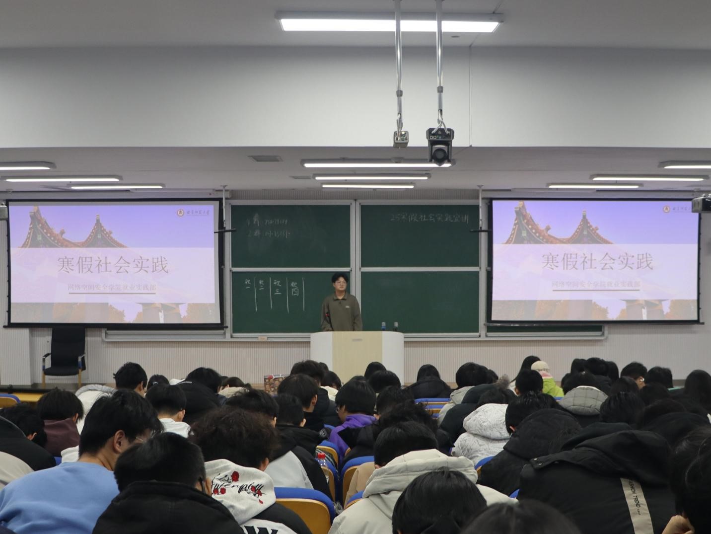 寒假社会实践宣讲活动于致知楼B101、B102教室召开。本次宣讲由学院就业实践部主主持宣讲,2025级全体学生参与会议。