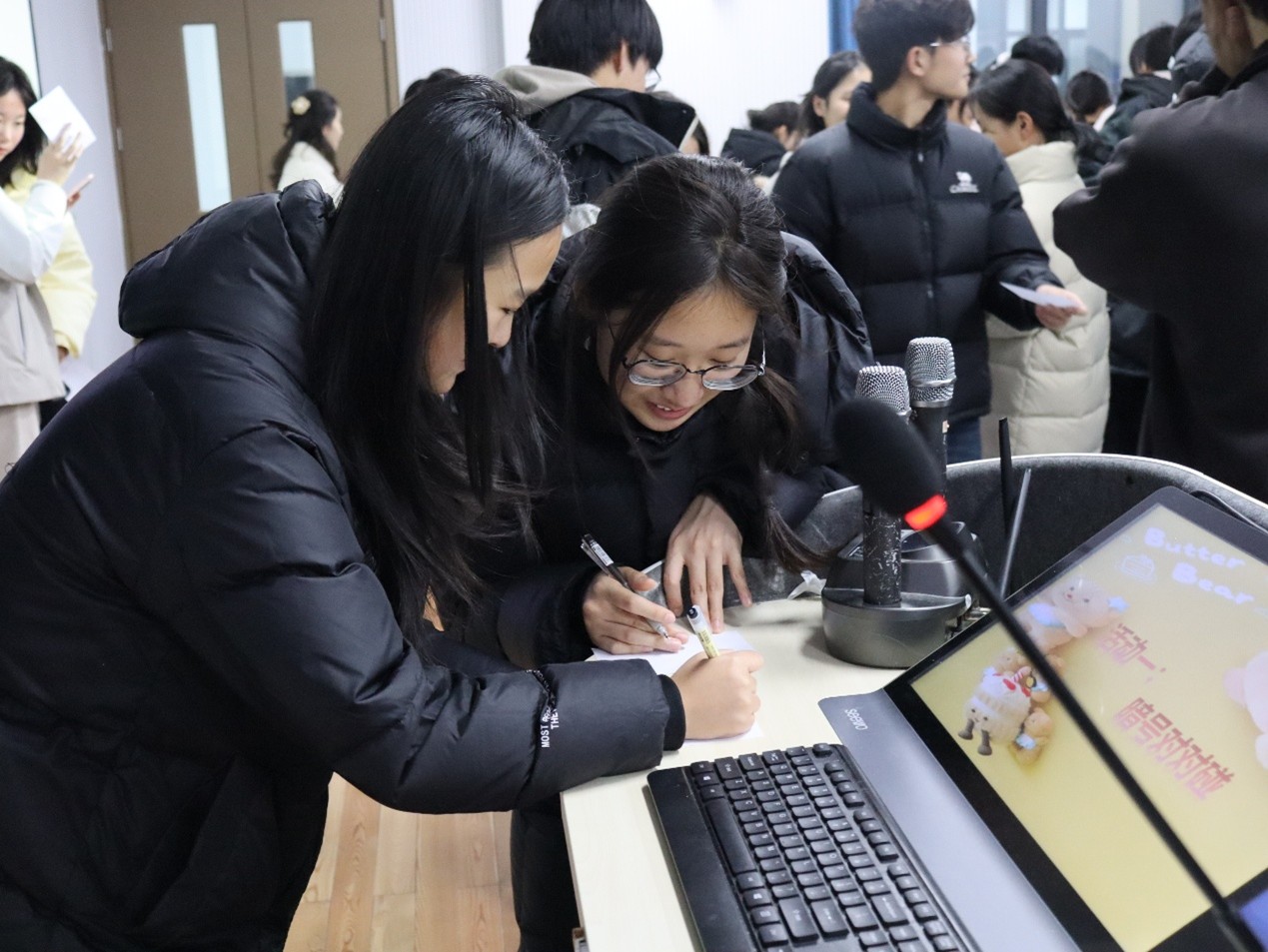 活动现场热闹非凡,特色游戏环节让同学们沉浸其中、乐此不疲:在《谁是骇客・狼人杀》中,“骇客与“好人”阵营展开逻辑与语言的交锋,一方设局迷惑、一方推理洞察,悬念迭起;《暗号对对碰》则让同学们在踊跃参与和默契传递间悄然拉近距离,消融陌生;《压力表情包》环节更激发创意,跨院小组协作挥洒灵感,创作出充满巧思的作品,引发现场阵阵喝彩。