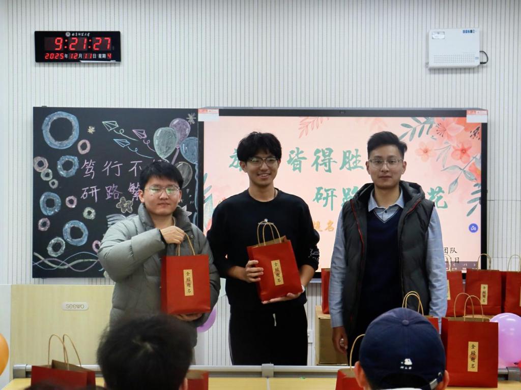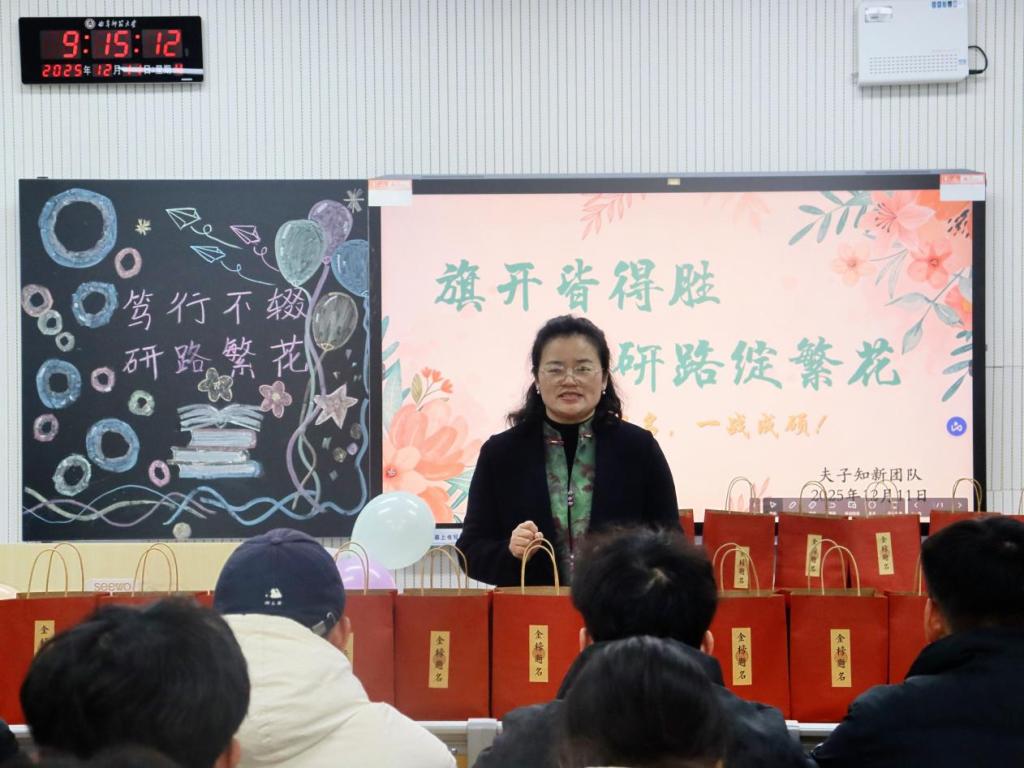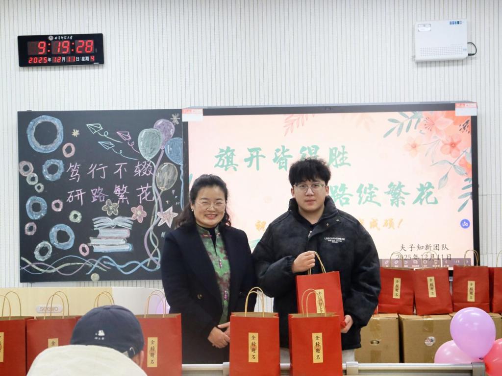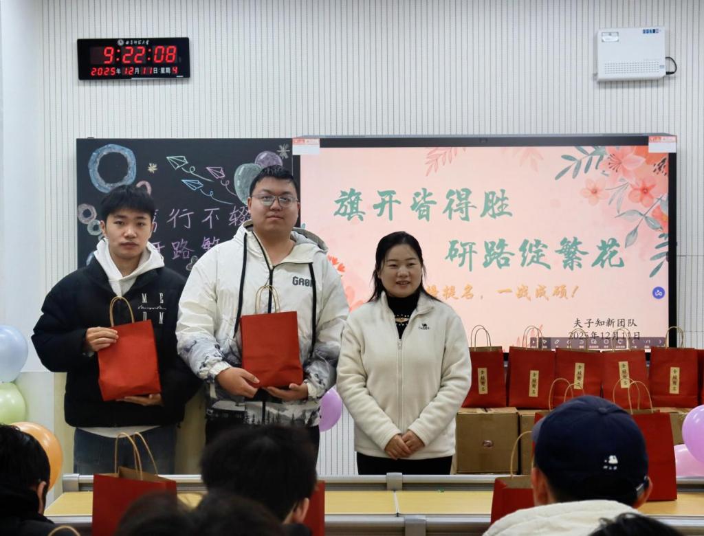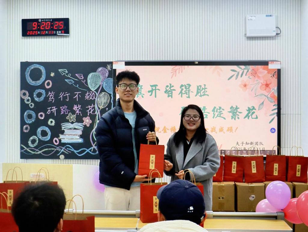 活动伊始,范瑞红对考研学子长期以来的坚持与付出给予充分肯定,勉励大家在冲刺阶段保持定力、坚定信念,以平稳心态和自信姿态迎接考试挑战。她希望同学们合理分配时间、避免过度疲劳,在关键时刻稳住节奏、从容出战。随后,相青提醒同学们科学规划作息,关注天气变化,注意添衣保暖,劳逸结合,以良好的身心状态投入最后阶段复习。活动中,老师们为同学们送上写有“金榜题名”的祝福礼盒,传递学院对考研学子顺利应考、取得理想成绩的美好祝愿,为即将到来的考试注入信心与力量。