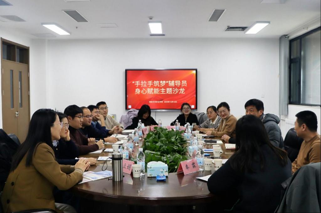“手拉手筑梦”辅导员身心赋能主题沙龙于格物楼A504会议室顺利举行,学校党委副书记刘涛,学生工作处处长姜美颖,团委书记孔轶众出席本次沙龙。