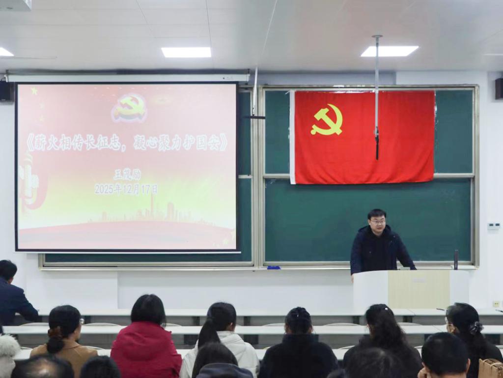 “薪火相传长征志,凝心聚力护国安”专题党课在综合楼106教室举行。院长王茂励担任主讲人,学院本科生、研究生党员及青年教师党员代表参加会议。