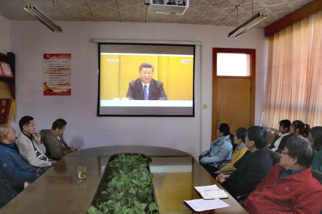 党委积极响应学校党委号召,组织学院师生在会议室观看直播。第一色情网