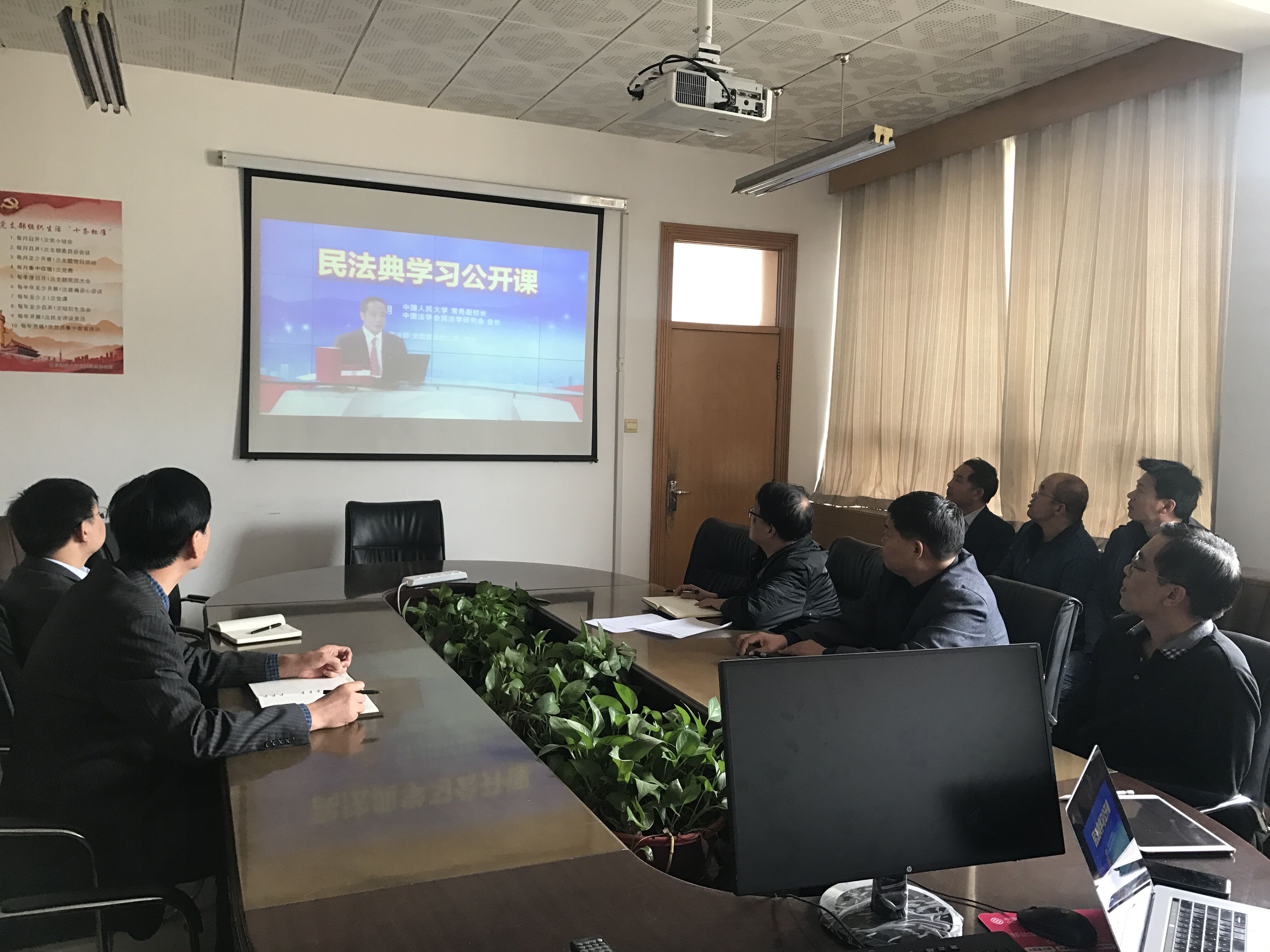 院讯(通讯员:范瑞红)为进一步加强《民法典》学习宣传,保障民法典实施,10月6日下午,学院党委理论学习中心组在会议室集中学习观看《民法典》公开课。学院教研室主任、科级干部一起参加学习,学院党委书记田云飞主持学习。