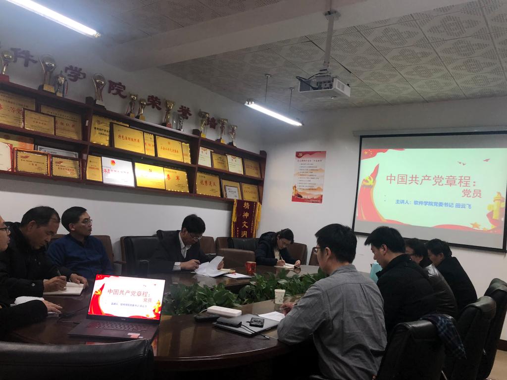 为纵深推进“不忘初心、牢记使命”主题教育扎实开展,引导教师党员提高思想认识,坚定理想信念,做好立德树人工作,弘扬优秀师德师风,发挥先锋模范作用,11月29日下午,软件学院党委书记田云飞为大家讲授《中国共产党章程》专题党课。