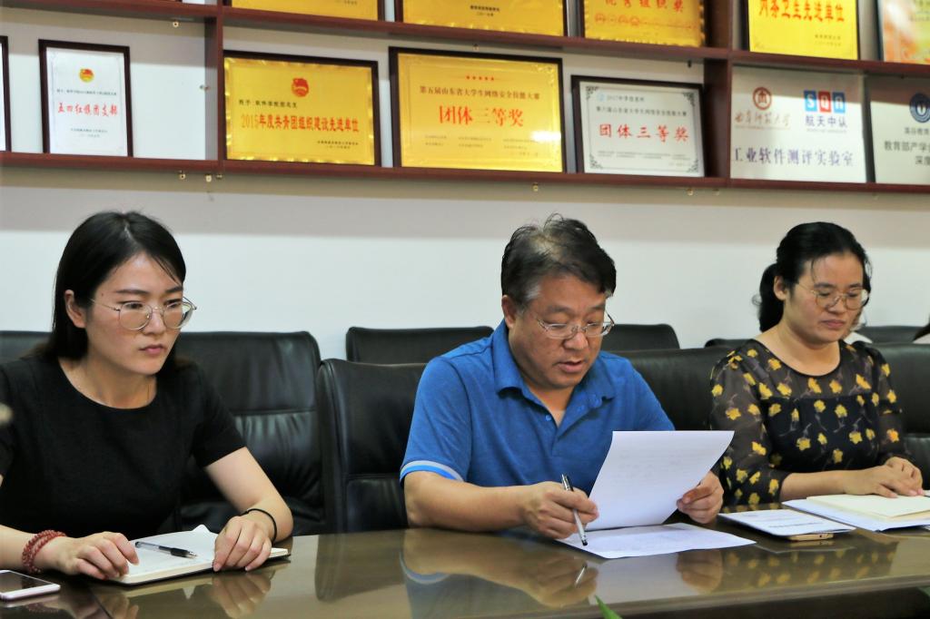 6月8日下午,软件学院学生党支部在会议室召开党员纳新大会。软件学院党委书记田云飞、软件学院学生党支部全体党员和入党积极分子参加了会议。会议由软件学院党委副书记、学生党支部书记田凯主持。