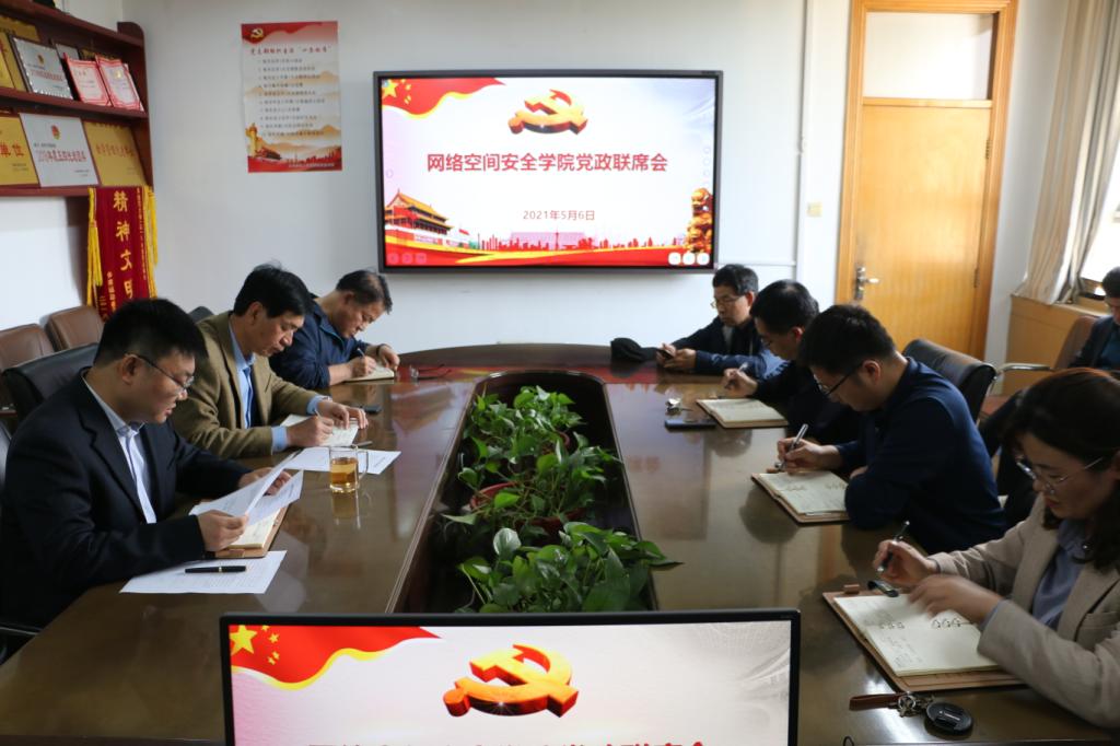 召开党政联席会议,就校长与本科生座谈交流反映的问题,进行落实、布置。学院党政领导班子成员、系主任、办公室、学团、教务等人员参加会议。学院党委书记田云飞主持会议。