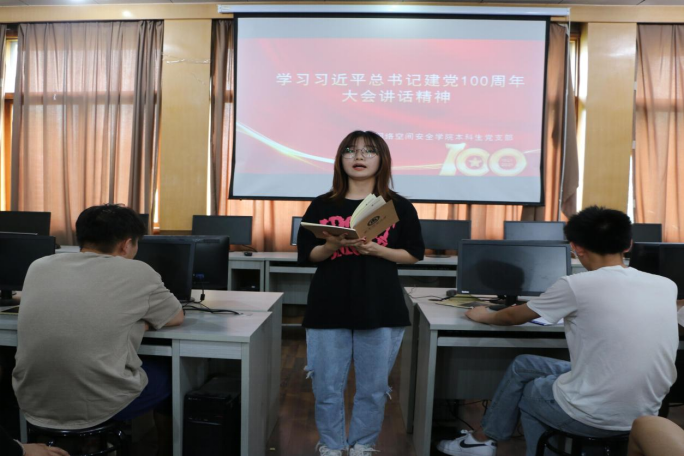 暮色苍茫看劲松,乱云飞渡仍从容。在实现中华民族伟大复兴的过程中绝不是一帆风顺的。在前进道路上我们必须保持中国共产党人百年未改之初心,增强“四个意识”、坚定“四个自信”、做到“两个维护”,无论何种艰难困阻摆在我们面前,我们仍要敢于出击,坚决斗争。活动中,学生代表相继发言。