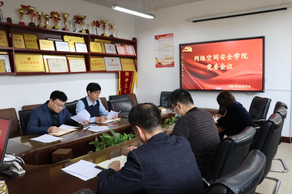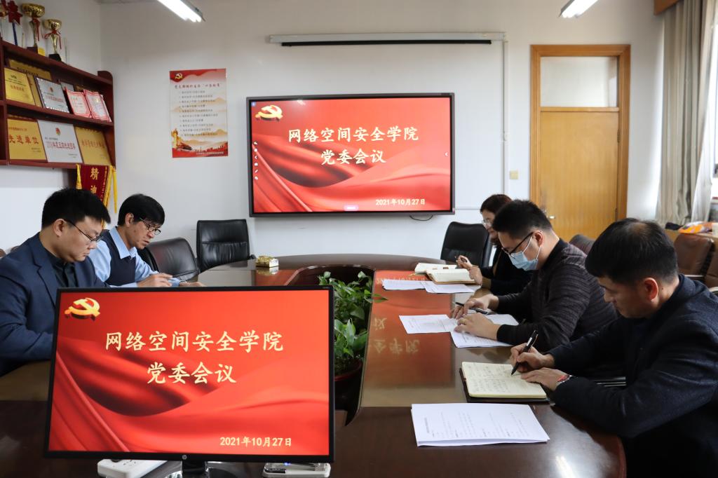 院讯(通讯员:相青)10月27日,网络空间安全学院于410会议室分别召开党委会和党政联席会,研究近期重点工作,学院党委委员参加会议,会议由学院党委书记田云飞主持。