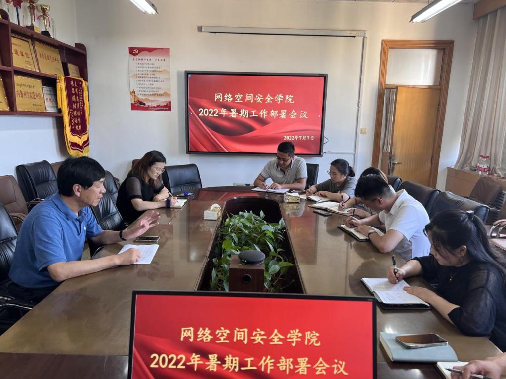 田云飞传达了学校会议精神,对2022年暑期留校学生管理工作进行了安排部署,强调全体师生要严格遵守学校安排,做到非必要不外出,严格落实离校审批、返校报备等手续;同时,强调暑期要加强实验室、机房、服务器等设备的管理,解决学生留校期间的日常需要,值班人员的手机要保持24小时畅通,以备处理各种突发事件,保证留校学生的安全和稳定。
