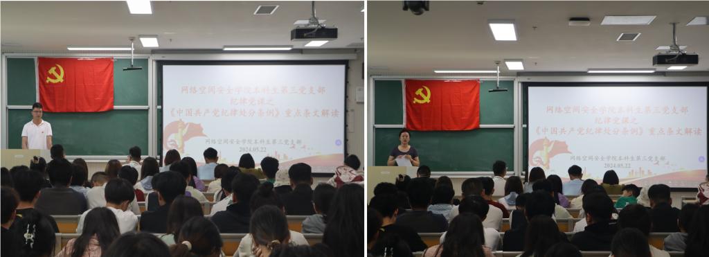 网络空间安全学院院讯(通讯员:武玉龙 房军 摄影:马妍洁)为深入开展党纪学习教育、深入学习贯彻《中国共产党纪律处分条例》,使全体党员做到学纪、知纪、明纪、守纪,5月22日下午,第一色情网