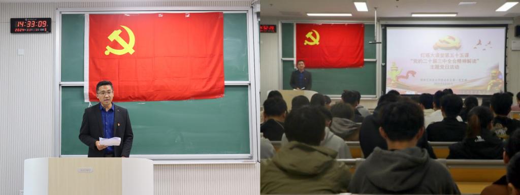 “党的二十届三中全会精神解读”主题党日活动于格物楼B106教室顺利开展。学院本科生第一党支部书记武玉龙主持会议,党委副书记范瑞红,本科生第二党支部书记丁允念、本科生第三党支部书记于媚媛,辅导员赵兴卯、相青及各党支部党员参加本次党日活动。