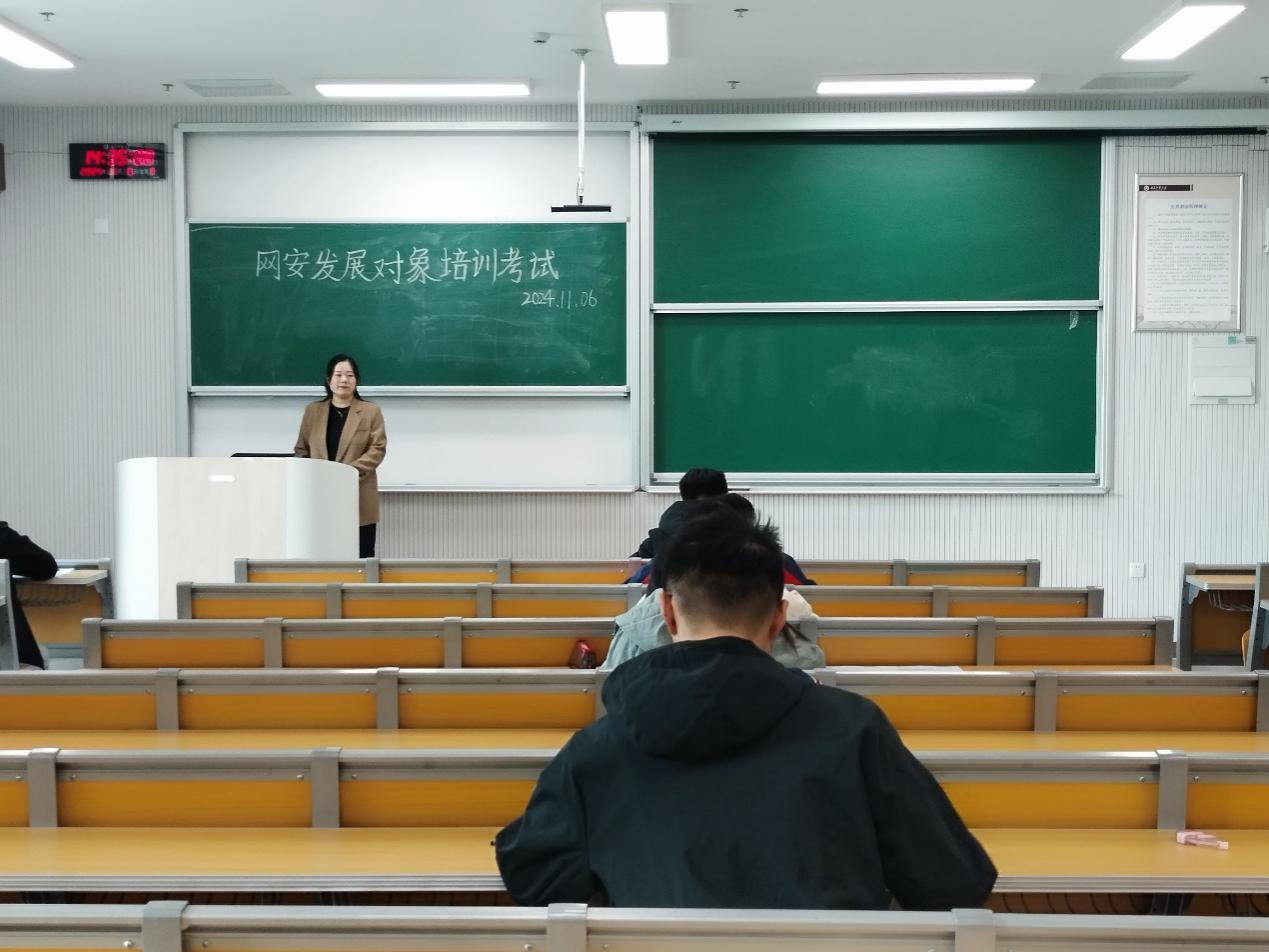 党员发展对象培训结业考试于格物楼B111教室进行,由辅导员洪亚玲担任监考老师。