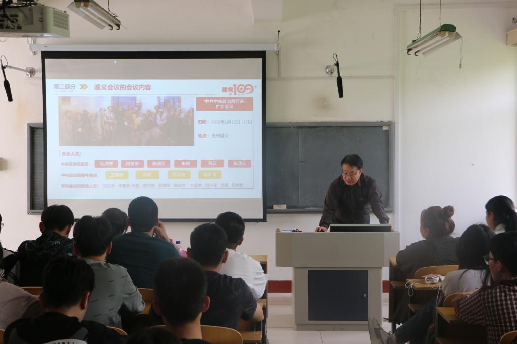 本科生党支部于体育教学部228教室开展书记讲党课学习活动,组织党支部全体党员学习遵义会议及其精神。学院党委副书记、本科生党支部书记田凯担任主讲,团委书记范瑞红,辅导员洪亚玲、武玉龙、丁允念及全体党员参加了学习。