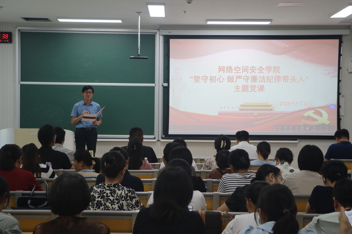 “坚守初心 做严守廉洁纪律带头人”主题党课于格物楼B107召开。学院党委书记田云飞担任主讲人,全体教职工参加会议。