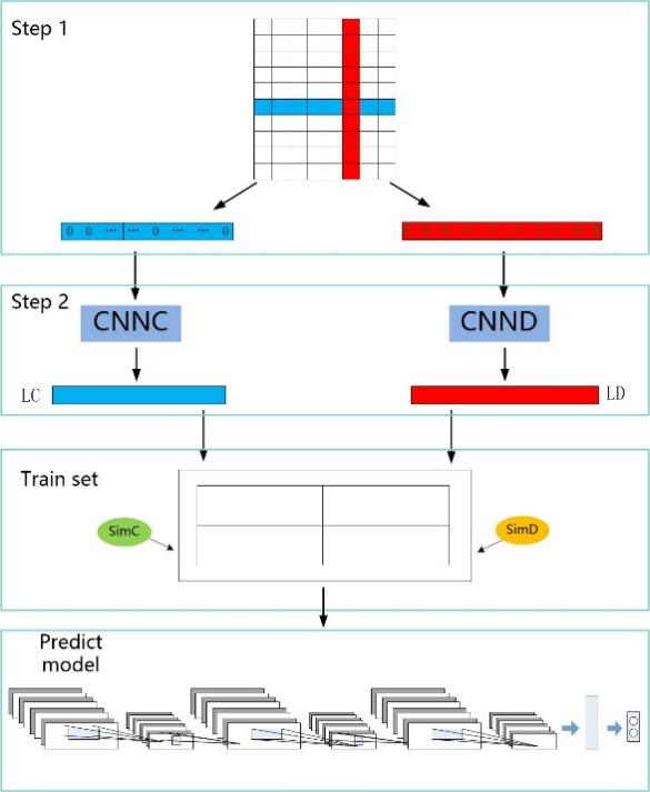 为了提取circRNA和疾病原始矩阵的线性特征,DMFCNNCD采用卷积神经网络作为映射模块来提取原始关联矩阵的分线性特征,增强原始关联矩阵的特征同时降低稀疏性,继而采用拼接的方式将circRNA功能相似性和疾病语义相似性构成新的训练单元作为特征输入卷积神经网络编写的预测模块中,同时采用L2正则化对交叉熵损失函数进行优化。五折交叉验证和案例研究的实验结果表明,该方法可以有效提升准确率。