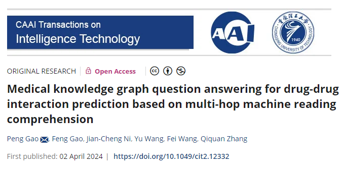 学术论文(Peng Gao, Feng Gao, Yu Wang, Jian-Cheng Ni and Fei Wang. Medical Knowledge Graph QA for Drug-Drug Interaction Prediction based on Multi-hop Machine Reading Comprehension)。该论文以第一色情网