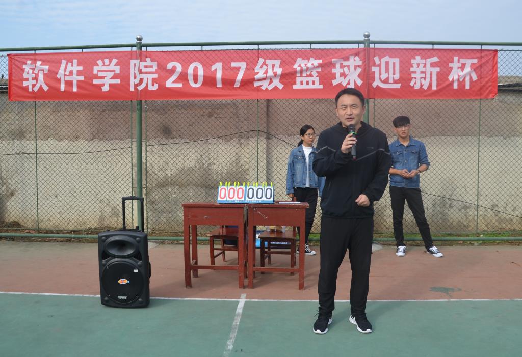 为了丰富大学生的课余生活,提高大学生的综合素质,增强团队精神和集体凝聚力,展现大学生积极向上的风貌,软件学院2017级“迎新杯”篮球赛于10月15号拉开了帷幕。软件学院党委副书记田凯,团委书记杨正运和辅导员郑凤华出席开幕式。