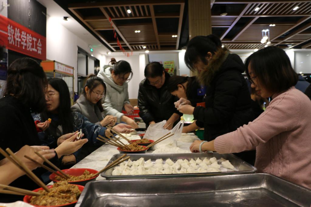 软件学院工会庆元旦包饺子活动在浓浓的祝福声中圆满结束。小小的饺子,带来一份相聚的温暖,也驱赶了寒冬的凉意。包进了一年的所思、所想、所得,包进了欢笑,也留下了软件学院教师和同学们一起走过的美好记忆。