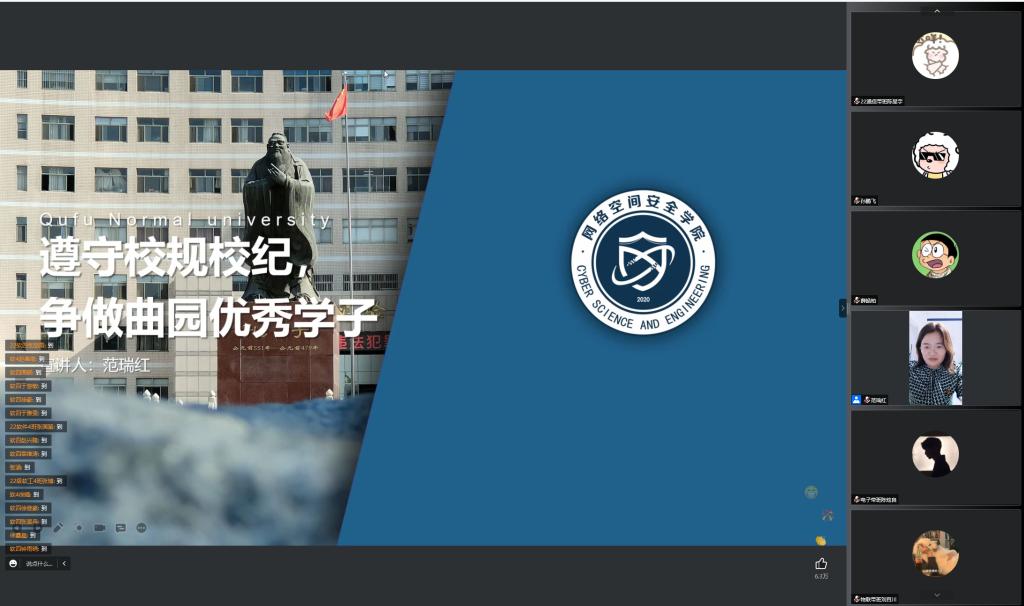 于线上召开“遵守校规校纪,争做曲园优秀学子”22级新生入学教育专题会议。学院党委副书记范瑞红担任主讲人,22级全体新生参加本次会议。