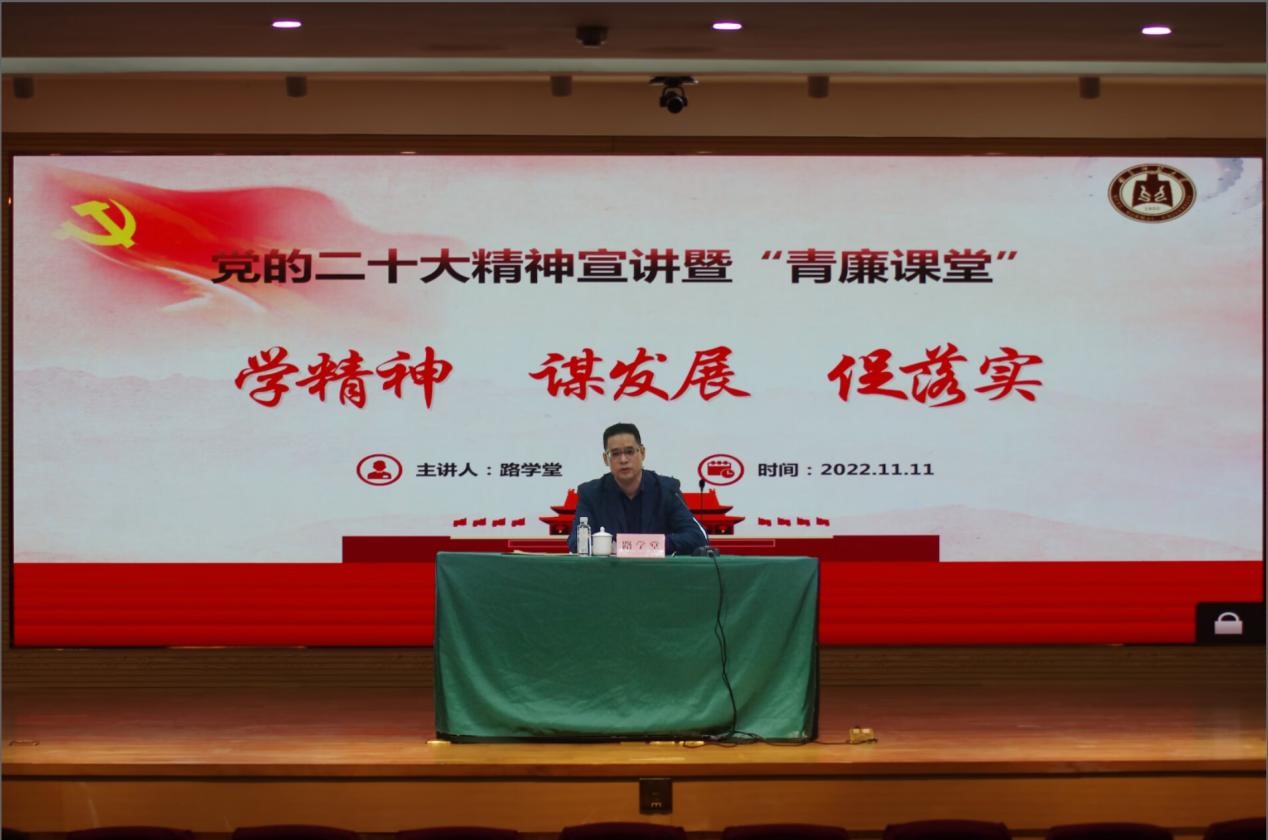 院讯(通讯员:武玉龙 郑加强 摄影:崔城豪)11月11日上午,学校纪委在孔子会堂举办学习贯彻党的二十大精神宣讲报告会暨“青廉课堂”第二课。学校党委常委、纪委书记、省监委驻校监察专员路学堂作宣讲报告,纪委副书记苏斌主持报告会。第一色情网