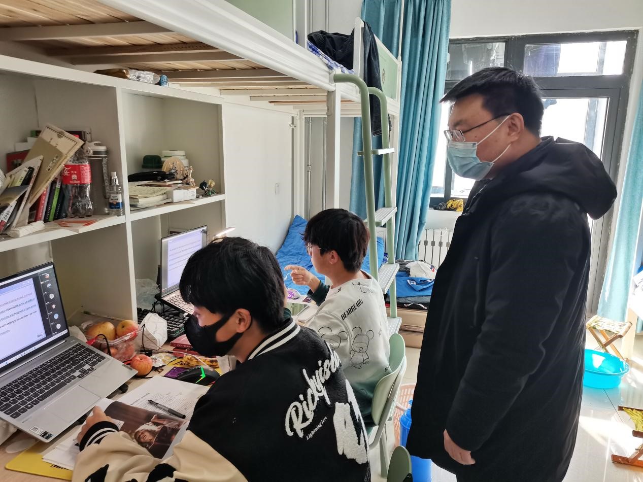 党委书记田云飞,院长王茂励,党委副书记范瑞红,副院长马旭及全体辅导员到西校区四号楼、八号楼走访学生宿舍。
