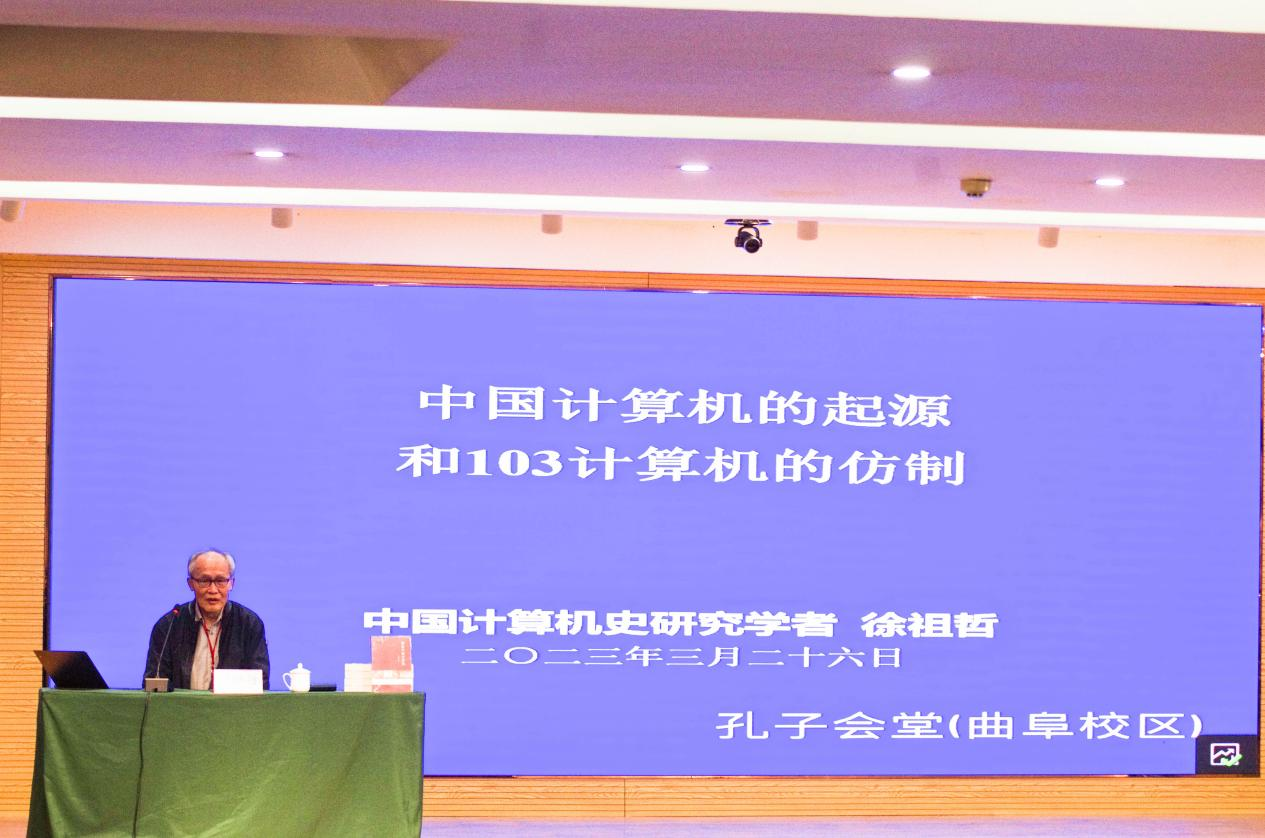 徐祖哲做了以《中国计算机事业起源和第一台103计算机的仿制》为题的报告。他讲解了中国计算机发展的艰辛历程以及计算机事业发展在中国国民经济、导弹武器研究等方面做出的重大贡献,给同学们分享了我校现存103计算机的前世今生,描绘出从事计算机建造先辈们的艰苦努力。他强调,计算机学者应不忘历史,以奋发、严谨的科学态度缩小现有装备和攻关目标的差距。徐祖哲鼓励同学们,要抓住机遇,通过积极参与计算机领域的竞赛和项目,掌握更多的计算机知识和技能,深刻体会计算机学科的独特魅力,培养解决实际问题的能力,为今后的学习和科研打下扎实基础。