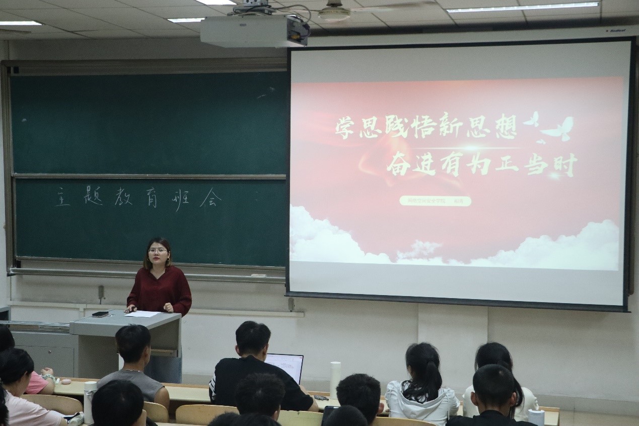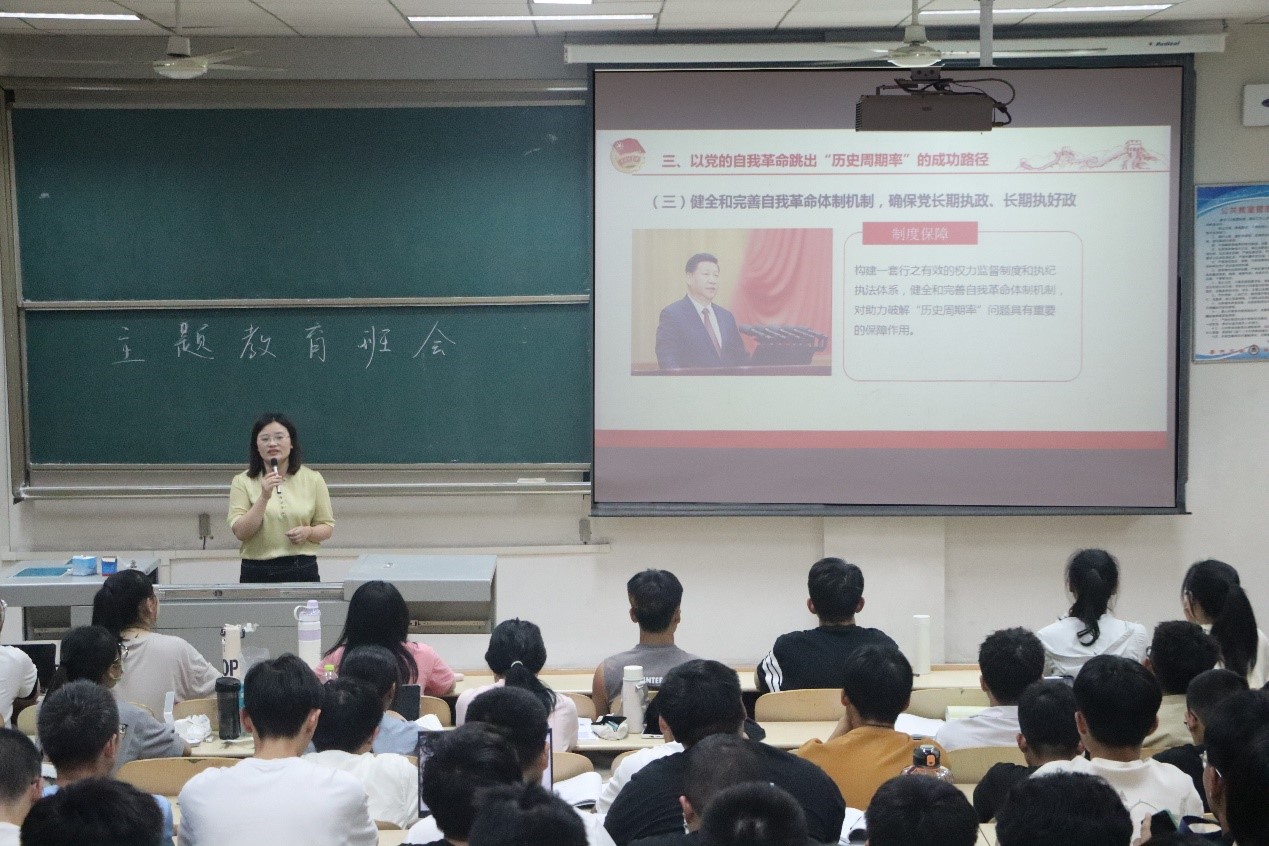 2022级学习贯彻习近平新时代中国特色社会主义思想主题教育班会于实验中心A405教室召开,学院党委副书记范瑞红与辅导员相青共同开展主题教育班会,2022级全体学生参加会议。