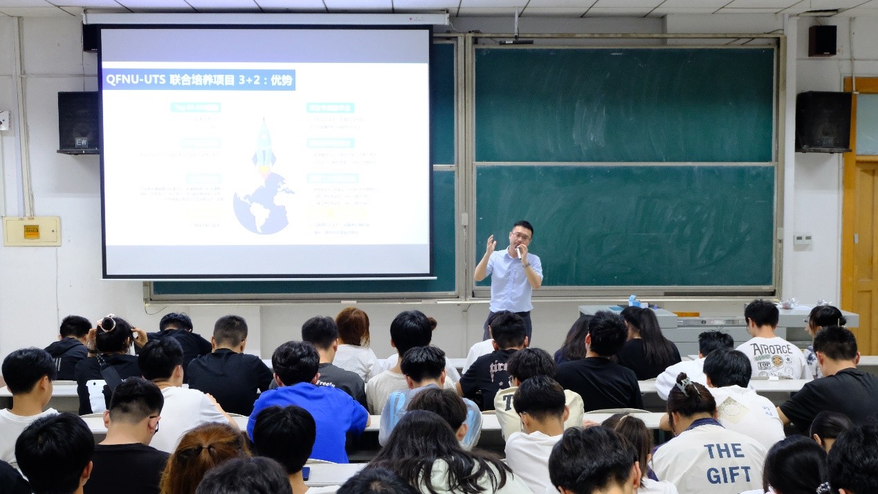 会议伊始,陈晓丽介绍了我校与悉尼科技大学3+2本硕连读联合培养项目的基本情况,该本项目面向我校在读本科生,学生在我校就读3年成绩合格后,赴悉尼科技大学就读2年,最终获得我校本科学位和悉尼科技大学硕士学位。随后,陈老师分享了出国留学对于价值观、世界观的自我塑造以及自我能力提升的巨大益处,引起了同学们的浓厚兴趣。接着,池宽老师向同学们介绍了悉尼科技大学的世界排名、学科建设、地理位置等相关概况,表达了对同学们来澳留学的欢迎,并分享了个人经验,向同学们提出了切实建议。最后,同学们就本次专题讲座的内容提出疑问,池宽进行了认真细致的解答。