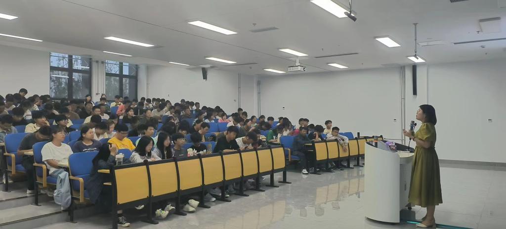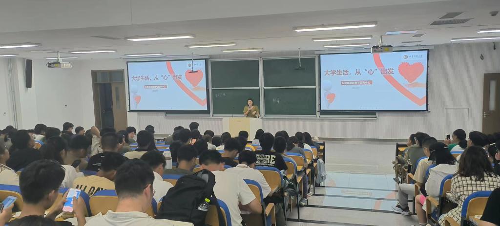 “从心出发,从心适应”新生心理健康教育活动于致知楼B101、102教室举办,心理辅导员相青担任主讲人,23级全体新生参加活动。
