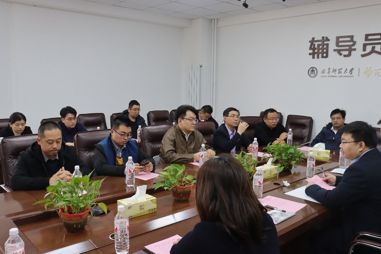 毕业生就业推进会暨“访企拓岗”座谈会于大学生活动中心辅导员之家举行。学院党委书记田云飞、院长王茂励、党委副书记范瑞红、副院长马旭、办公室主任夏涛、全体辅导员以及山东卓朗检测股份有限公司、山东融发数字运营有限公司等企业代表参加会议。会议由田云飞主持。