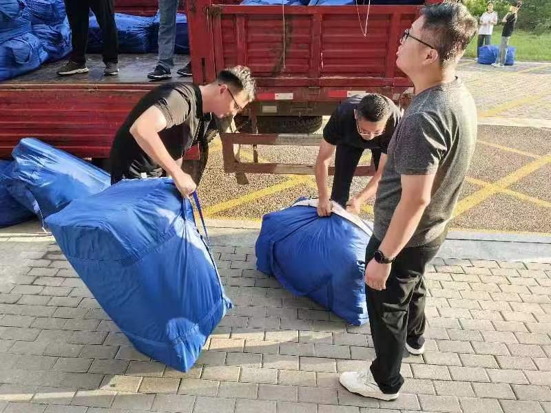 搬运工作开始前,丁允念和武玉龙叮嘱同学们在搬运过程中严格按照搬运计划,注意个人安全的同时高效率完成新生物品进宿舍的工作。同学们反复清点各类物品,确保准确无误后向宿舍楼内搬运。在搬运分发过程中,现场组织有序、师生们相互配合、齐心协力,最终将2024级新生的被褥和军训用品全部准备到位。
