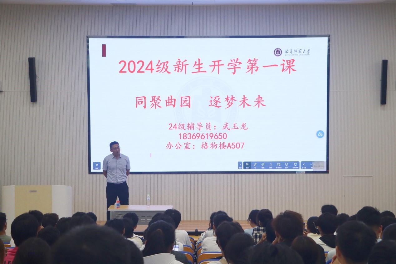 新生“开学第一课”主题班会于格物楼B201、B202顺利举行,学院2024级辅导员武玉龙担任主讲人,24级全体新生参加。