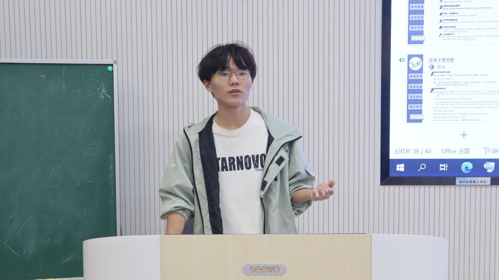 首先,李解介绍了“挑战杯”全国大学生系列科技学术竞赛的背景和意义,强调了大挑与小挑的区别以及各自的侧重点。她指出“挑战杯”竞赛旨在引导和激励青年学生将所学知识与经济社会发展紧密结合,提高创新、创意、创造、创业意识和能力。随后,刑一冲详细介绍了大赛的主赛道组别,并结合往年的获奖案例进行分析,让同学们对“挑战杯”有了更直观的了解;同时,他强调了参赛要求,对作品的申报规定进行了详细说明。最后,范广乐在参赛准备的讲解中强调了选题、团队合作、指导老师的重要性,并指出了准备参赛材料、提升软实力以及制作支撑材料的必要性。