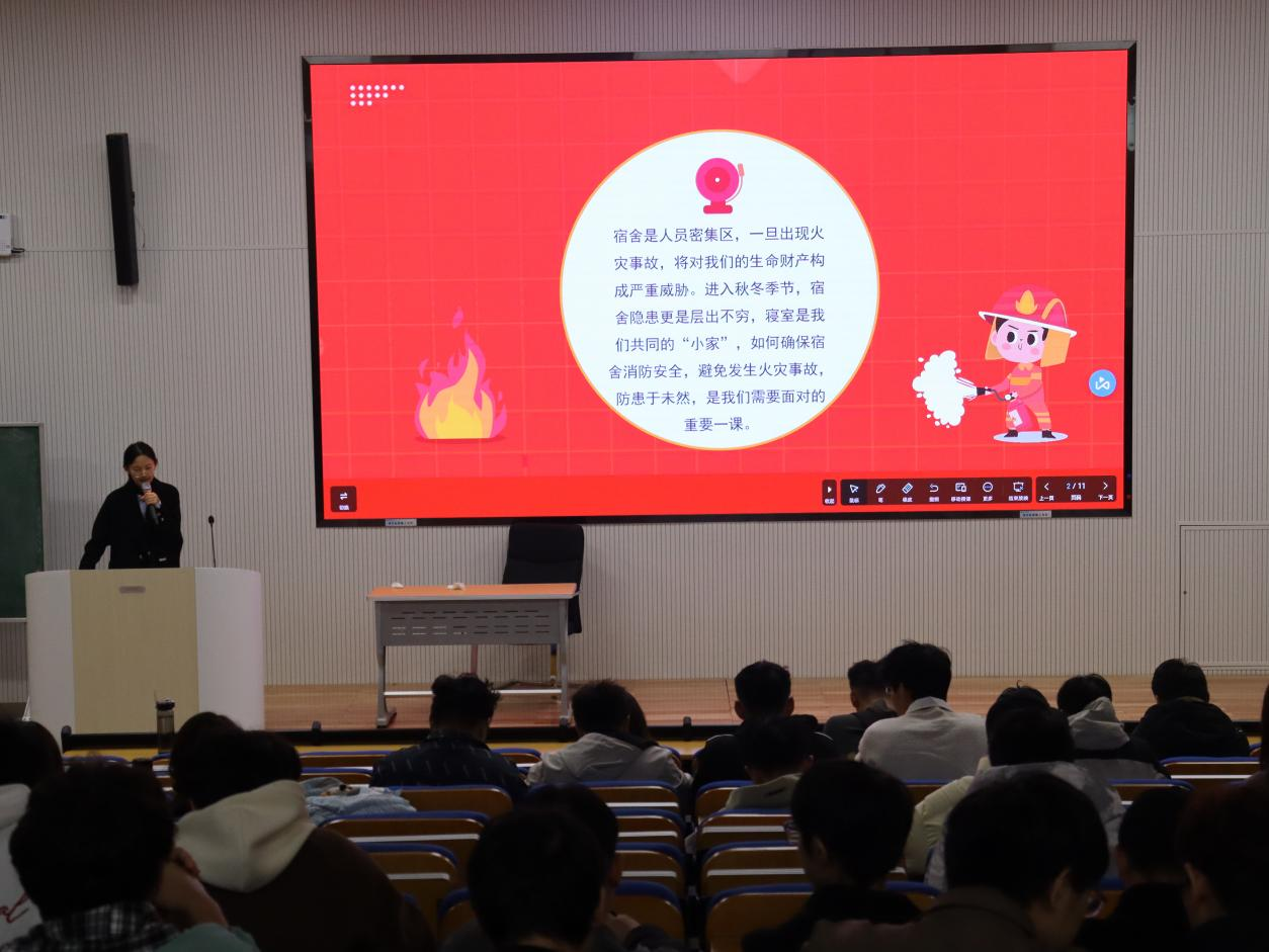 “寝室防火安全知识教育主题会议”于致知楼b201、b202开展。网络空间学院全体寝室长参与,宿卫部副部陈士洁、孔浩天担任主讲人。