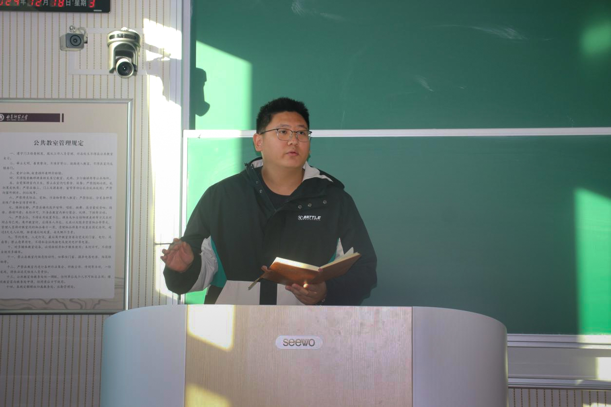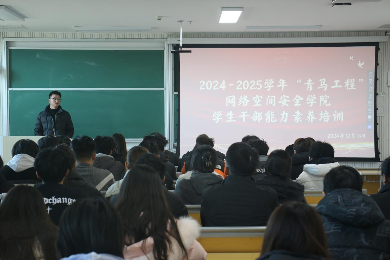 “青马工程”大学生骨干培训班于格物楼b218教室开展,学院团委书记丁允念,第十届团委学生会全体成员及23级、24级班团参加会议,学生会主席刘子新主持会议。