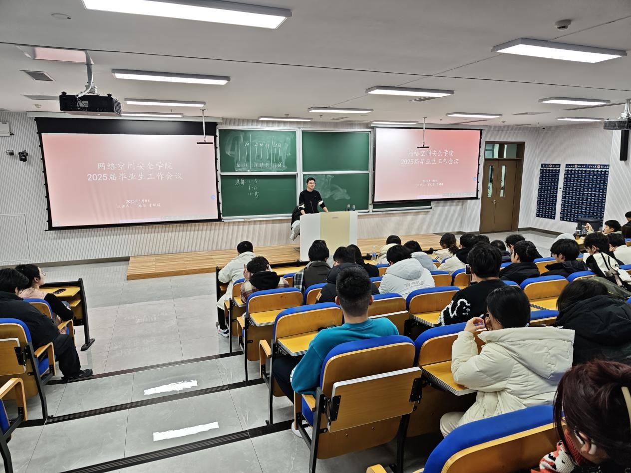成功召开2025届毕业生就业推进会议,会议由学院团委书记丁允念主持,毕业班辅导员于媚媛、2025届全体毕业生参会。