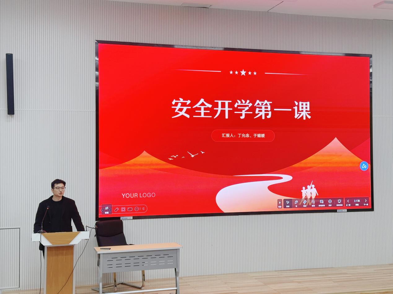 各年级组织召开“安全开学第一课”主题班会。学院党委副书记范瑞红,团委书记丁允念,辅导员武玉龙、于媚媛、相青、赵兴卯分别担任各年级主讲人,学院全体本科生参加会议。