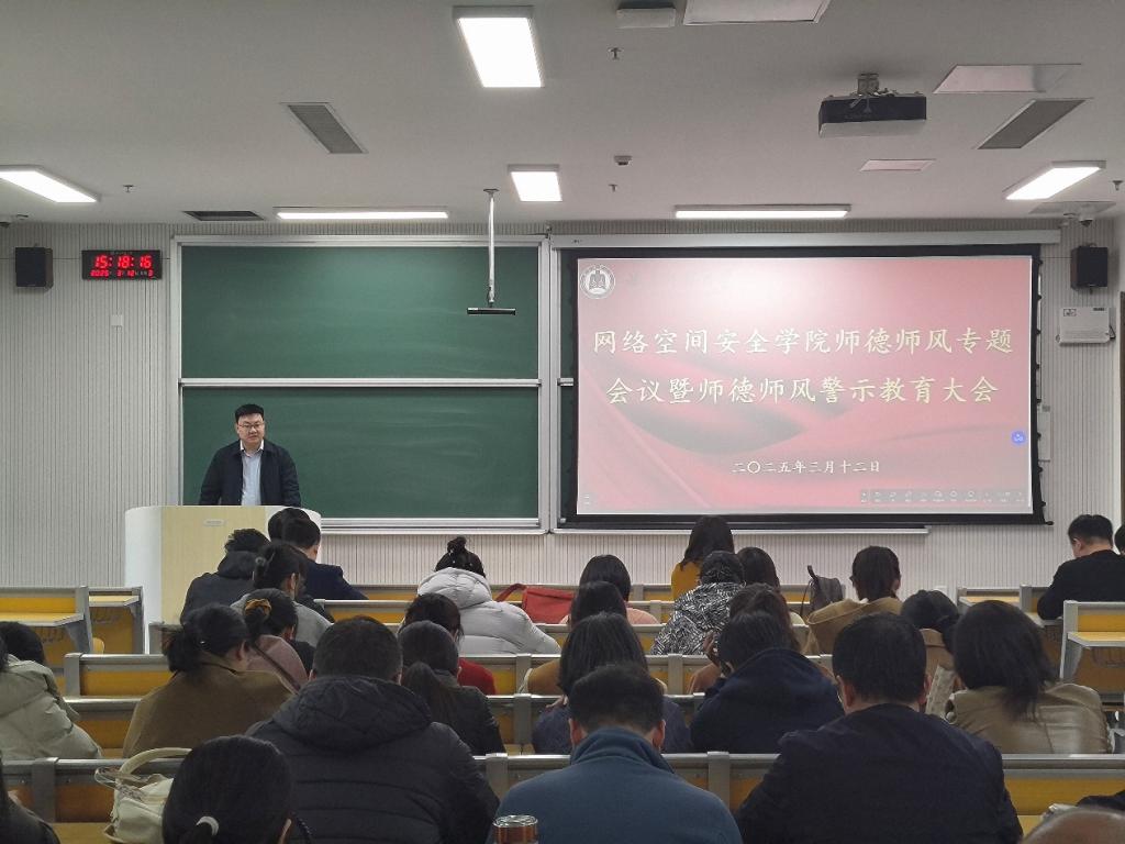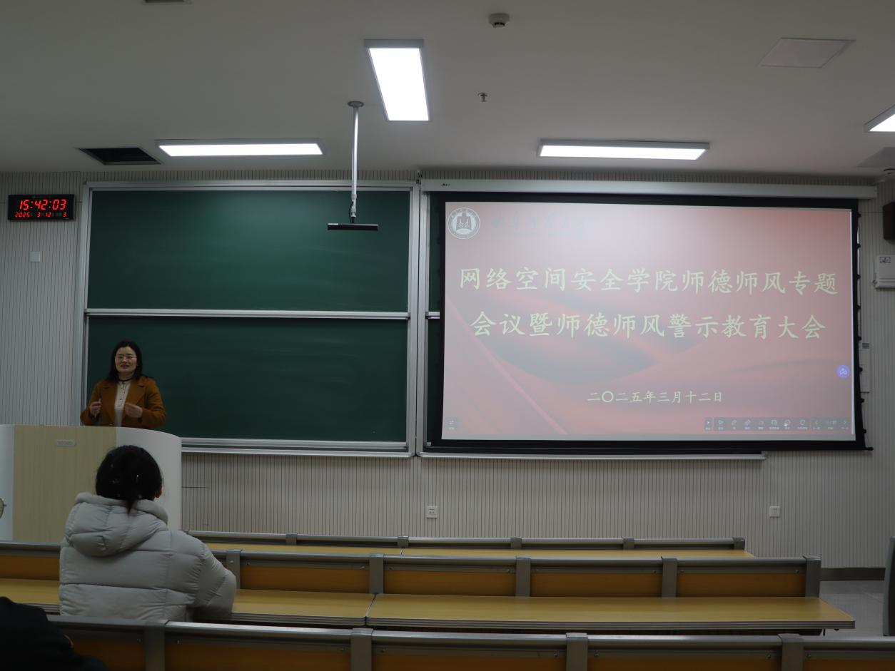 师德师风专题会议暨师德师风警示教育大会于格物楼B215教室召开。学院党委书记田云飞,院长王茂励、党委副书记范瑞红、副院长马旭以及全体教职工参会,会议由田云飞主持。