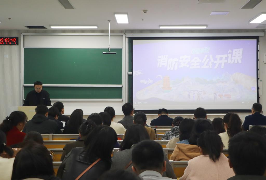 会议伊始,田云飞结合典型火灾案例,深入系统地讲解了消防安全知识体系。重点围绕火灾预防机制建设、消防设施器材的操作规范以及火灾应急处置预案等内容进行了专业阐述,有效提升了教职工的消防安全意识和应急处置能力。此外,田云飞还带领全体教职工共同观看消防安全的直播。直播过程中,专业的消防人员针对校园环境中可能存在的火灾隐患进行重点剖析,通过现场演示的方式,让教职工们更直观地了解操作要点,强化教职工对消防安全知识的理解与掌握,从而更好地将消防安全意识传递给学生。