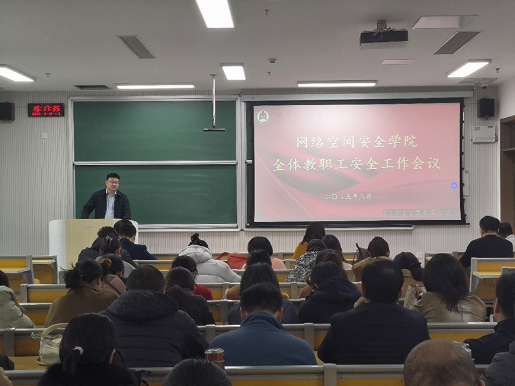 全体教职工安全工作会议于格物楼B107教室召开。学院党委书记田云飞、院长王茂励、党委副书记范瑞红、副院长马旭以及全体教职工参会。会议由田云飞主持。
