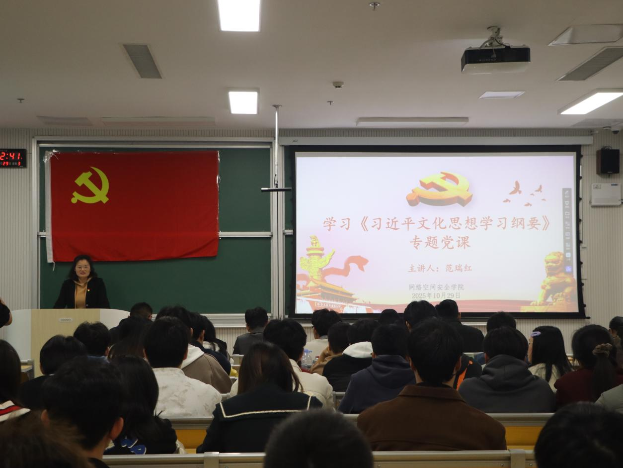 于格物楼B106教室开展学习《习近平文化思想学习纲要》专题党课。学院党委副书记范瑞红担任主讲人,为本科生第一、第二、第三党支部全体党员讲授专题党课。