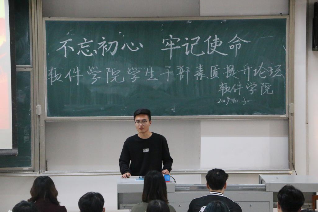 10月30日下午,软件学院学生干部素质提升论坛在综合楼406顺利进行,软件学院团委书记范瑞红、辅导员洪亚玲出席本次会议并讲话,学生会主席张鑫主持本次会议。
