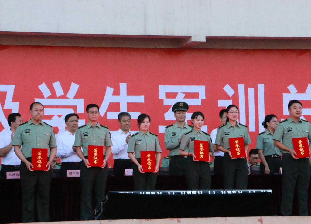 获得拔河比赛第三名和军训先进工作单位称号,2019级新生辅导员洪亚玲荣获优秀指导员称号,三营七连荣获优秀连队称号,三营五连教官郝盛冉和三营七连教官谢玉洁荣获优秀教官称号,部分新生获得优秀标兵称号。至此,军训汇演圆满落幕。