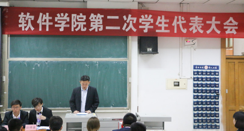 软件学院第二次学生代表大会在综合楼101成功召开,软件学院党委副书记田凯、团委书记范瑞红、辅导员郑风华以及学院学生代表参加大会,大会议题选举新一届学生委员会。