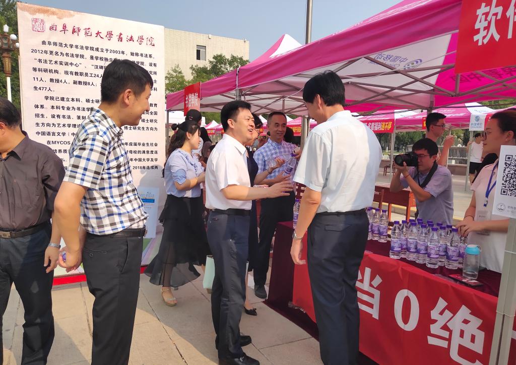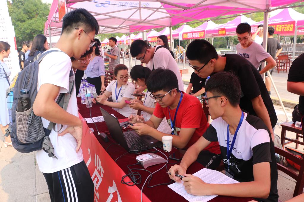 党委书记田云飞,党委副书记田凯,副院长倪建成,团委书记范瑞红,辅导员郑凤华、洪亚玲在迎新工作现场指导。“会当0绝顶,1览众山小”,壮志豪情的迎新标语,给踏入曲园的学子注入澎湃的激情和力量。1和0组成的代码世界,将为同学们推开另一扇门,打开一片新天地。“瓶”水相逢,一瓶瓶定制的水,宣传学院文化内涵,标注温馨提示,为车马劳顿的新生、家长,送去了沁入心田的凉爽和浓浓的情谊。“一纸传情”,启航院报第一期亮相,第一时间让新生了解学院的文化和取得的成绩,共享荣耀,共同开启新篇章。特色鲜明的迎新活动,引大量师生关注。