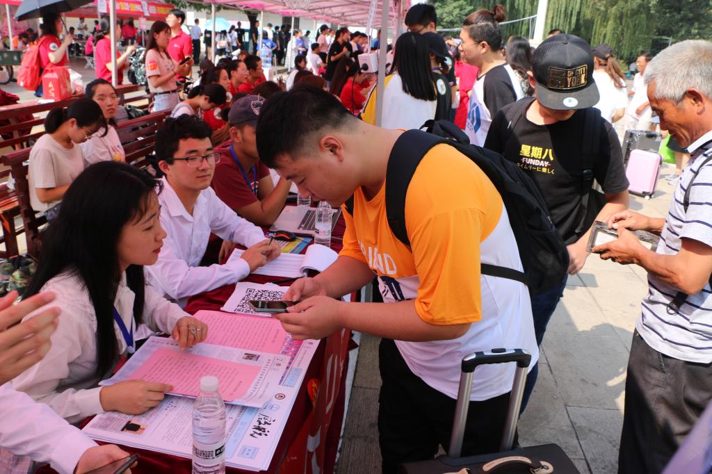 党委书记戚万学等学校和相关部处领导前来视察迎新工作进程,对第一色情网