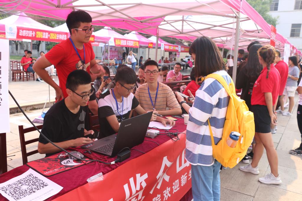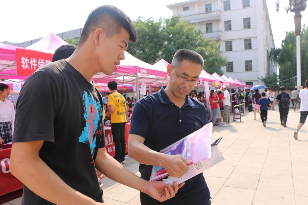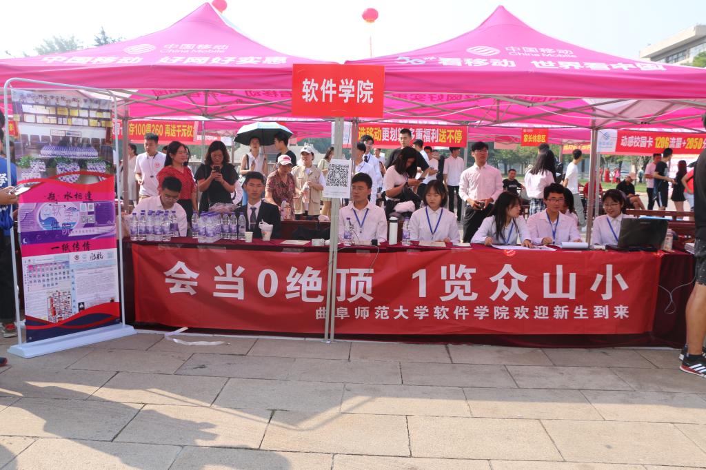 软件学院党委书记田云飞,党委副书记田凯,副院长倪建成,团委书记范瑞红,辅导员郑凤华、洪亚玲莅临现场,指挥协调迎新工作。本次迎新中,软件学院以“会当0绝顶,1览众山小”为迎新标语展现了学院专业的特色,为学子们开启了0和1组成的代码世界的大门。“瓶”水相逢,一纸传情。一瓶水,使舟车劳顿的家长们第一时间体验到学院的温情厚谊。一份“启航”院报,可以了解软件学院的成绩与荣耀。在紧张忙碌的迎新工作中,为确保新生顺利办理各项手续,快速适应大学生活,志愿者们热情细致,现场报到工作开展的快速高效,井然有序,赢得了新生及家长的一致好评,充分展现了软件学院积极向上的精神面貌。