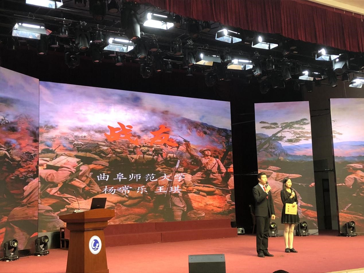 据悉,本次比赛由中共济宁市委宣传部,济宁市国防教育办公室,济宁军分区政治工作处,济宁市教育局,济宁市民政局,济宁市文广新局,共青团济宁市委联合主办。我校学子以大赛主题“传承红色基因,汇聚强军力量”为出发点,结合自身特色,演讲出属于自己的风格,展现出曲园学子的风采。来自软件学院2016级的王琪与来自文学院2015级的杨常乐带来的原创作品《战友》改编自真实的抗战老兵的英雄事迹,在演讲中将现实叙述与情景再现的表现方法相融合,使观众情不自禁的感叹千金难换的战友之情,在潸然泪下中抒发了爱国强军之志。软件学院2017级学子王鹏带来的作品《盛世中国,如您所愿》通篇以恢弘大气的演讲模式向人们讲述了中华民族繁荣富强的发展历史,在演讲过程中以气势磅礴的声音与表现风格,表达出十九大以来,中国步入新时代,强军的目标落在当代青年的肩上;青年兴则国家兴,青年强则国家强,在演讲者的诉说中,现场观众深深感受到,强军富国,吾辈大任勇承当的愿景。最终,《盛世中国,如您所愿》,《战友》两部作品荣获大赛一等奖。