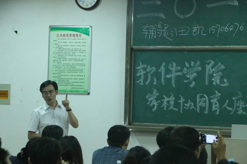 软件专业美好前景。他指出,软件工程专业作为一级学科,有着极大的社会价值,这对新生来说既是机遇也是挑战,同学们要刻苦勤奋,树立远大目标,同时家长们要对孩子的未来充满信心。倪建成教授向家长们作软件工程简介报告,深入浅出的讲解了什么是软件工程、专业背景、专业现状、各专业方向具体培养方案以及学制学分等问题,使家长们更加的了解了软件工程这个专业。杨正运书记围绕大学生定位与独立、合理规划大学四年、诚信、助学金简介、安全意识这五个方面的问题同家长交流。会议最后,新生家长积极提问发言,与学院领导老师进行了详细的交流。