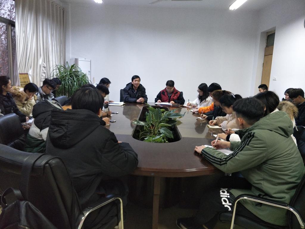 会议主要部署安排期末考试相关事宜。田云飞书记强调了良好考风考纪对于学院学风建设的重要性,要求全体学生切实贯彻落实我校关于加强学风建设的“四个零”行动,各班学生干部做好带头工作,诚信考试,杜绝考试作弊行为。田凯书记就教务处下达的关于期末考试的相关通知及学院考试日程进行解读安排,并向同学们嘱咐及时订购寒假往返车票,确保安全返校,及时到校。